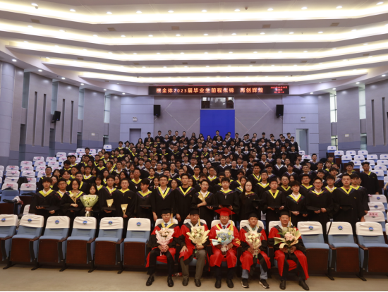 仪式在庄严的国歌声中拉开序幕。今天,每位毕业生都穿上了学位服盛装出席学位授予仪式,袖口边丝丝金线承载着对未来的美好希冀。胡明毅院长为获得学士学位、硕士学位的毕业生逐一颁发证书、拨穗、正冠,祝贺他们圆满完成学业。仪式结束,学生代表为昔日导师献上鲜花并与所有毕业生合影留念。