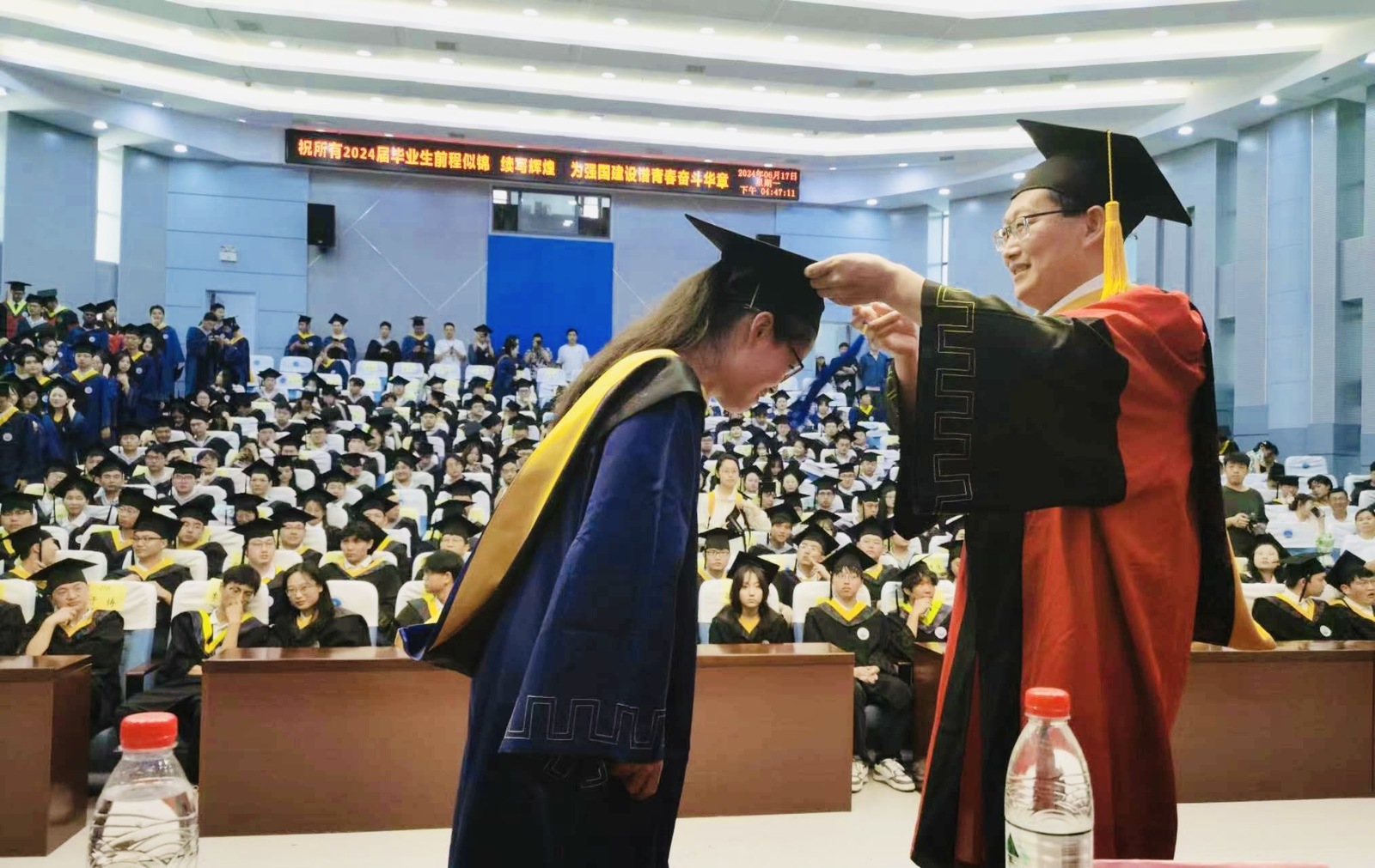 (通讯员 李佩津)离歌悠扬,伴梦启航。6月17日下午16:30,2138cn太阳集团2024届毕业生学位授予仪式在石油科技大楼学术报告厅隆重举行。2138cn太阳集团院长朱光有教授、教学委员会主任何幼斌教授、学术委员会主任李少华教授、副院长胡忠贵教授、副院长江山教授、全体辅导员和学生亲友出席仪式,共同见证这一难忘时刻。