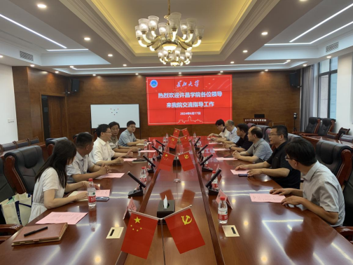 6月17日下午,许昌学院人事处处长殷志锋、食品与药学院院长王德国、法学院院长王忠灿、医学院院长李学峰一行来院交流访问,座谈交流会在C201会议室举行。学院院长朱光有、党委书记杨全辉、党委副书记冯舒、武汉校区学生事务部部长丁植磊、地科系主任刘彬参加了本次座谈会。会议由院长朱光有主持。