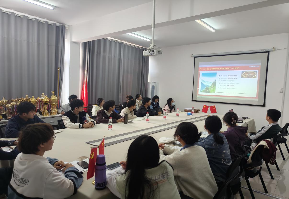 党委书记杨全辉在总结时强调,一是要进一步学深悟透。各系(中心)要利用系(中心)教师会议、支部主题党日活动等形式进一步深入学习领悟,要将全会精神融入“大思政”育人格局中,与师生日常思想政治教育结合起来,切实提升学习效果;二是要将学习成果转化为深入推进学院综合改革工作的行动自觉。全院上下要深刻把握学院发展的形势、机遇和挑战,以全会精神为指导,切实增强深化学院综合改革的责任感和紧迫感,统一认识,凝心聚力,以求真务实的工作态度、严谨扎实的工作作风、奋发有为的工作状态,扎实有效解决学院发展中的痛点、堵点、难点和师生反映强烈的急难愁盼问题,加快推进学院治理体系和治理能力现代化,努力交出进一步全面深化改革、奋进中国式现代化新征程的优异答卷,为加快推进一流学科和特色高水平大学建设作出更大贡献。