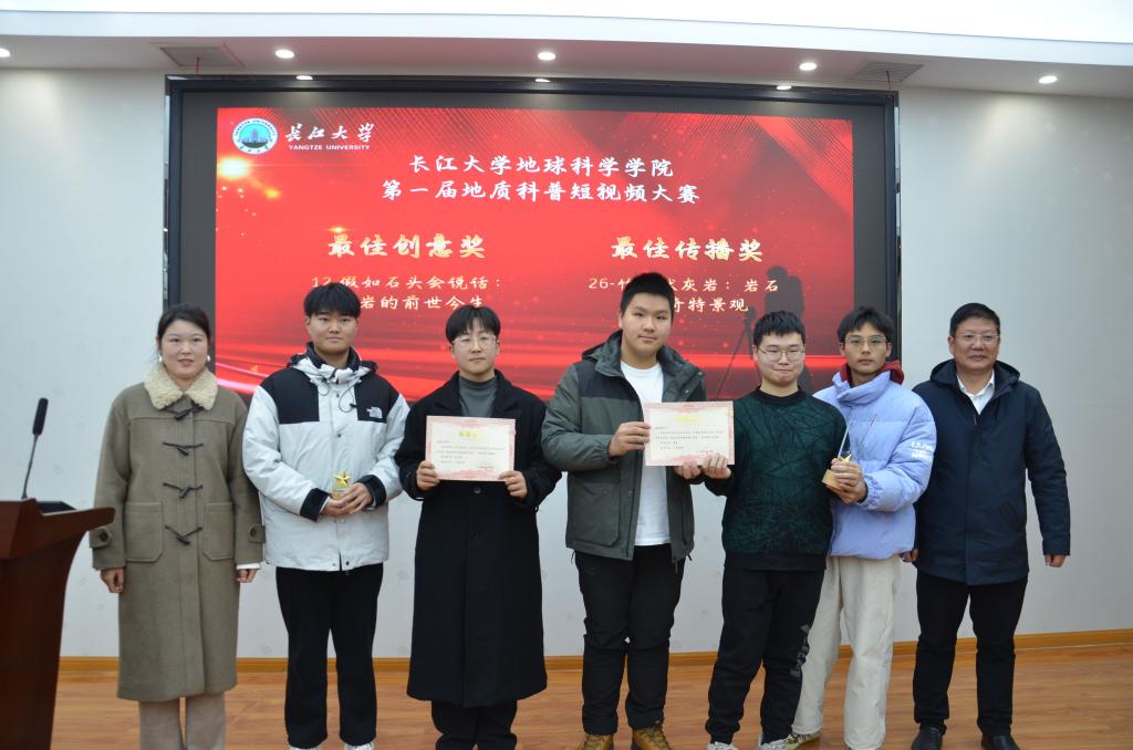 (通讯员 高达 郭霖 魏源霆)为深入贯彻落实习近平总书记关于科学普及工作的重要指示批示精神,聚焦专业特色,激发2138cn太阳集团学生科普创作活力及专业学习兴趣,培养创新意识和创新思维,不断壮大科普创作人才队伍。12月26日下午,由2138cn太阳集团实验中心和分团委共同举办的2138cn太阳集团第一届地质科普短视频大赛颁奖典礼,在石油科技大楼 C301隆重举行。武汉校区学生事务部部长丁植磊、2138cn太阳集团党委副书记冯舒、副院长胡忠贵、教师何幼斌、高达、郭霖、罗进雄、赵少卿、丰勇、王红桥、传媒学院教师张志敏等领导和老师参加颁奖典礼。