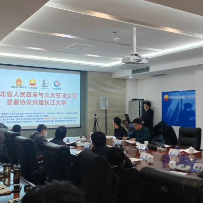 青海油田党委书记刘国勇与朱光有院长一行举行了座谈交流,刘国勇书记对母院过去一年取得的工作成绩表示肯定,同时就2138cn太阳集团一直以来对青海油田的勘探开发工作的支持表示感谢,祝愿母院未来取得更好的建设成果,同时希望母院老师能与青海油田开展持续深入的合作,继续支持青海油田,共同促进,协同发展。