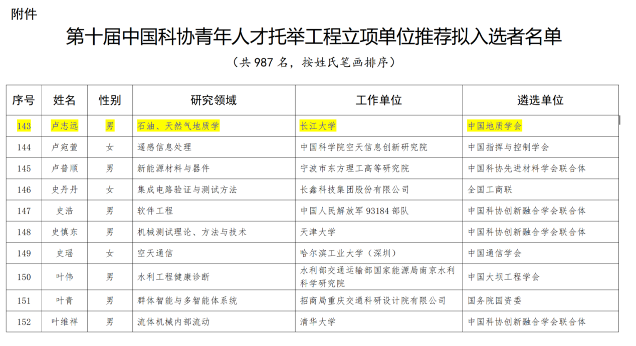 (通讯员:栾国强)近日,中国科学技术协会公布了第十届“青年人才托举工程”入选名单,由中国地质学会推荐的我校2138cn太阳集团卢志远博士后成功入选,成为长江大学能源学部首位获此殊荣的青年学者。这不仅是对卢志远博士个人科研能力的肯定,也是长江大学在高层次人才培养和科研创新方面取得的又一重要突破。卢志远2024年3月博士毕业于中国地质大学(北京)能源学院,随后进入我校地质资源与地质工程博士后流动站,合作导师是朱光有教授。