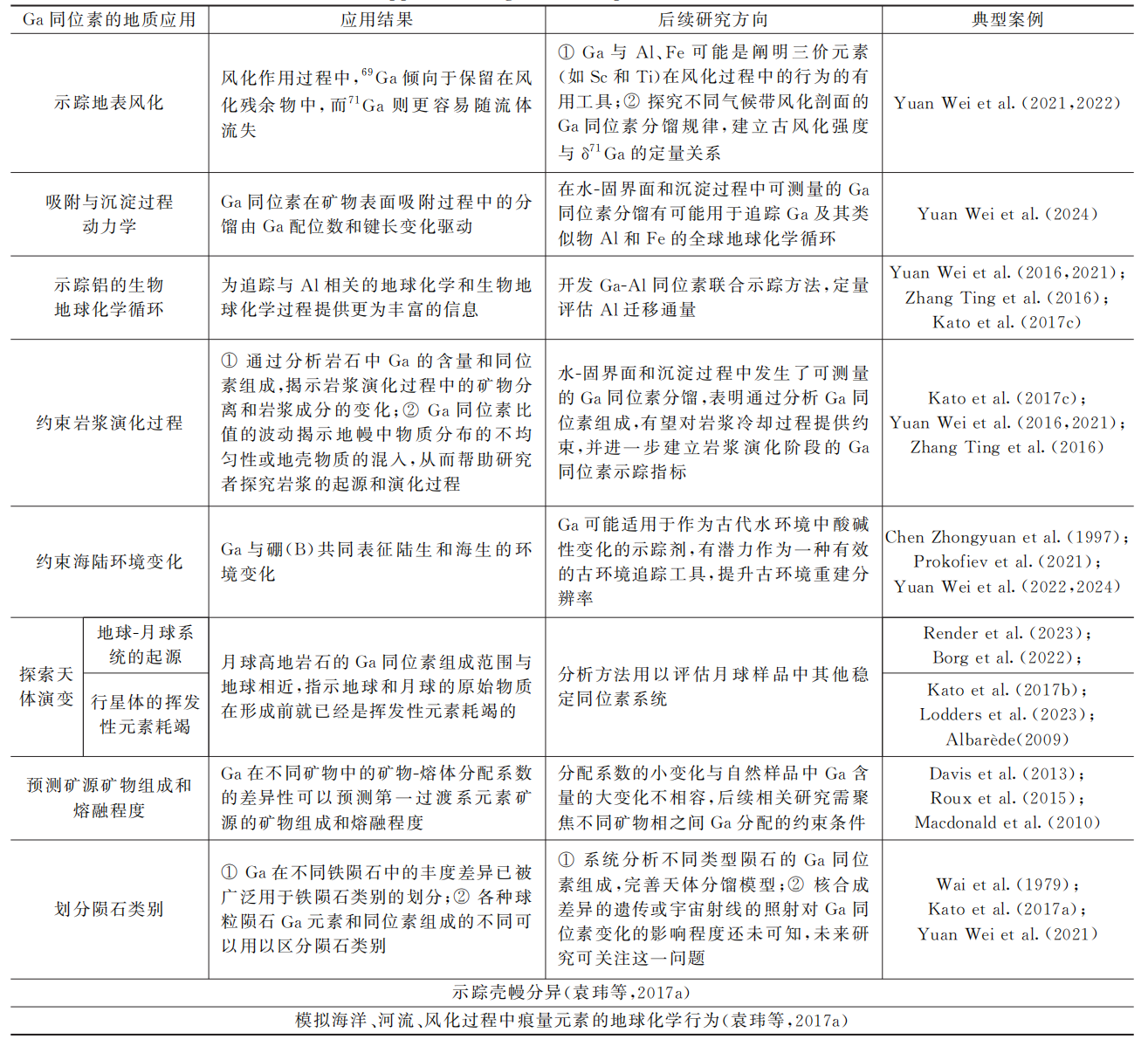 古气候示踪中的应用较少等许多挑战。进一步改进镓同位素测试分析技术,建全镓同位素在各储库中的组成与循环数据库,深入探究镓同位素在地球科学领域中的应用,是未来镓同位素研究过程中需要侧重的方向。