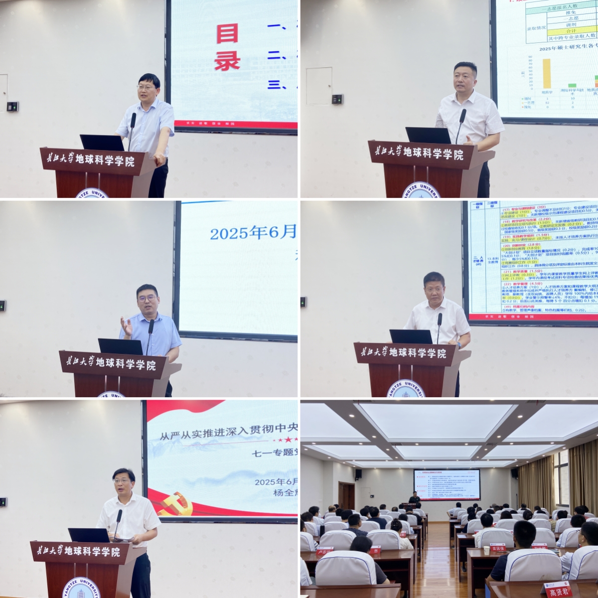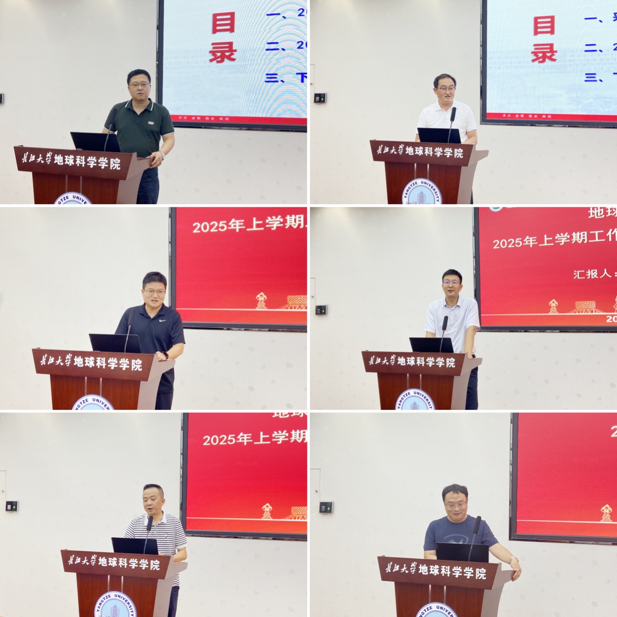 石油系主任叶琳、地质系主任李涛、地科系主任刘彬、地信系主任刘远刚和实验中心主任丰勇分别就各自负责的系(中心)2025年前半年工作与安排、2025年前半年工作成效和下半年重点任务与对策进行汇报,从教学、科研、人才培养、人才引进、学科建设、平台建设、研究团队建设、实验室建设、实验室安全保障与管理、宣传工作、科普工作等方面全面展开,切合实际、对标对表进行总结和分析,讲问题、找差距,对标其他高水平高校,把自己目前的问题剖析透彻,并对如何高质量完成全年任务,提出相应的措施,提升管理能效。
