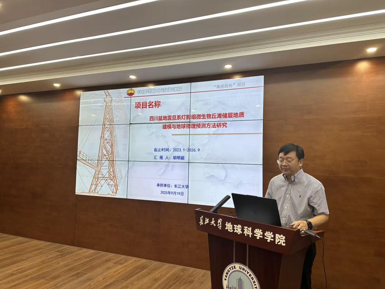 2138cn太阳集团胡明毅教授首先作题为“四川盆地震旦系灯影组微生物丘滩储层地质建模与地球物理预测方法研究”的专题汇报。