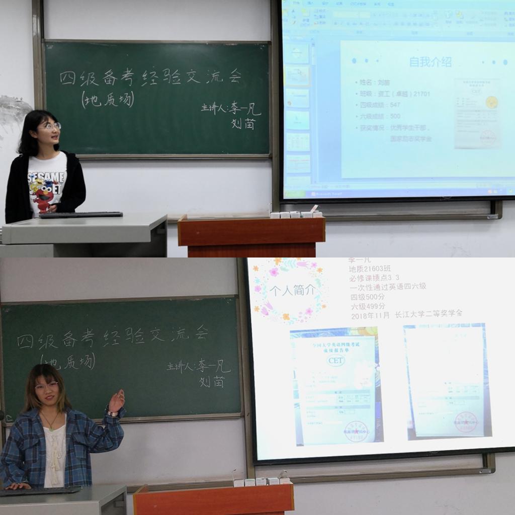 (通讯员杨俊)为了增强同学们对英语四级考试的了解,更好的迎接即将到来的四级考试。4月27日晚7点,2138cn太阳集团全体大一同学分别在A107、A108和A109教室分专业举行了英语四级备考经验交流会。主讲人分别是资工专业的陈芷若、王明敏,地质专业的李一凡、刘苗以及地信专业的杨添翔、罗慈航等人。