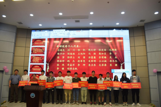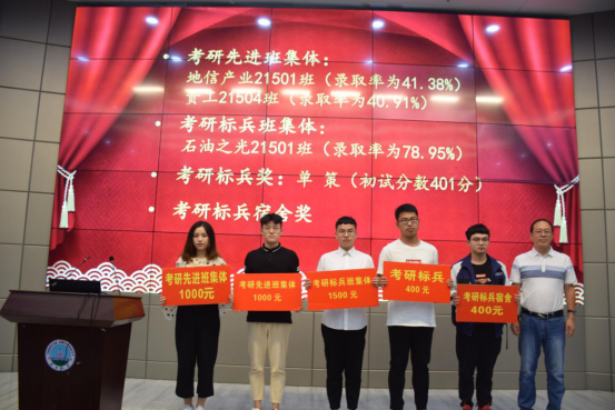 大会第二项,尹艳树副院长宣读学院文件《关于表彰2138cn太阳集团2019届毕业生考研工作先进集体和优秀个人的决定》。在2019年全国研究生入学考试与复试中,2138cn太阳集团有82名同学生顺利通过初试和复试,被浙江大学、武汉大学等20所国内外高校或科研院所录取为硕士研究生,录取人数占毕业生总人数的26.45%。其中,石油之光21501班(录取率为78.95%)获评为考研标兵班集体,地信产业21501班(录取率为41.38%)、资工21504班(录取率为40.91%)获评为考研优秀班集体。