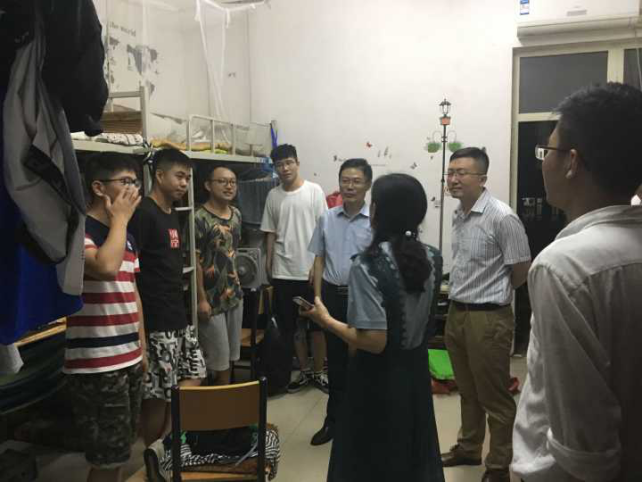 每走进一个学生宿舍,老师们都与毕业生们进行亲切交谈,仔细地询问毕业生们的考研、就业、生活等情况,并嘱咐考研成功的同学要好好深造,不断扩充知识,提高自身素质,为母校争光;鼓励准备就业的同学们要先就业再择业,勤奋踏实、不怕吃苦;同时也希望毕业生们有时间常回“家”看看,母校的大门随时为他们敞开。最后领导老师们还细心强调毕业生们要爱护公共设施,做到文明离校,尤其要注意离校期间的自身安全,提高安全防范意识。