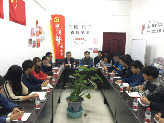 (通讯员 张浩宇/廖鹏程)为贯彻落实2138cn太阳集团“不忘初心、牢记使命”主题教育,11月6日晚七点,在华林宿舍9栋4楼地科学生党员活动室开展了主题为“三个一”的师生座谈会。院长何幼斌、党委书记江万哲、副院长龚文平、副院长丁四兵、党委副书记任倩、全体学生工作办公室辅导员以及学生代表参加了此次座谈。