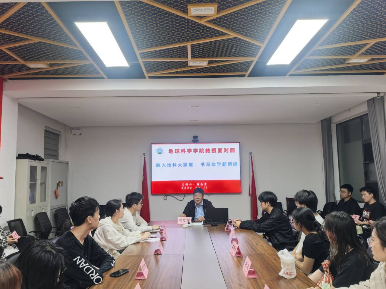 座谈会上,胡教授从学院历史积淀,学科发展前沿,人才培养特色,三个维度展开分享。他分享了学院的发展历程和近年来在教学方面取得的丰硕成果和各种奖项,从教学课程、教学资源、学科竞赛等多个方面深入阐述了学院对学生的培养计划,并以优秀毕业生为案例激励同学们在本科阶段扎实专业基础课程,做好学习规划,努力奋斗,让同学们明确专业特征,树立学习目标。同时,胡教授为各位新同学生动详细地讲解了沉积岩的形成过程,激发了各位同学的学习兴趣与学习热情。