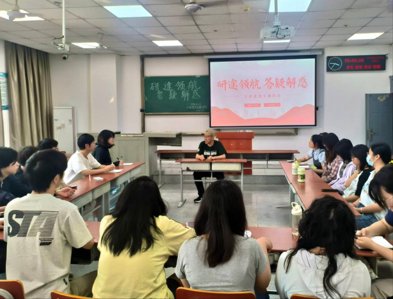 活动由班长李曾双主持,同学们围绕“如何联系导师”、“跨专业考研如何弥补专业课短板”、“如何定位研究方向”、“如何提升自身竞争力”、“本专业就业形势”等问题积极提问。李少华老师结合近年考研数据,从院校专业选择、备考时间线等方面逐一展开分析。李老师强调了“知己知彼”的重要性,他提醒同学们选择院校时,要综合考量学科实力、地域资源与个人兴趣,避免‘唯分数论’盲目报考,就业选择同样不能盲目,不要为了考研而考研,应结合自身实际情况,选择最适合自己的方向。针对科研入门难题,李老师通过拆解经典论文案例,演示文献综述撰写技巧与实验设计逻辑,告诉同学们科研始于问题,要在阅读中培养批判性思维。