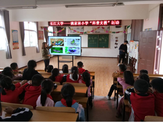 活动开始前,实践部成员和支教小组积极参与精心准备。课堂上主讲人郑娜以“蝴蝶”开篇,首先向同学们介绍蝴蝶的一些基本地学知识,比如:蝴蝶的种属科目,毛毛虫变成蝴蝶的过程,还详细介绍了毛毛虫和蝴蝶的各种形态。接着,又向大家介绍了我国享誉盛名的地质公园——丹霞山,丹霞山动植物资源较为丰富,像著名的丹霞三宝、各种菌类,风景也极其优美,各种山巅盖绿、山台荫林、河溪竹影不胜枚举。向大家介绍借助PPT,图文并茂,用形象生动,又不失幽默风趣的语言,缓缓道来。在课堂休息时,还设置了地学小知识有奖竞猜,小朋友们积极参与,争先恐后的举手回答问题。主讲人耐心细致的讲解及志愿者们认真负责的态度获得了姚家岭小学教师的一致好评。