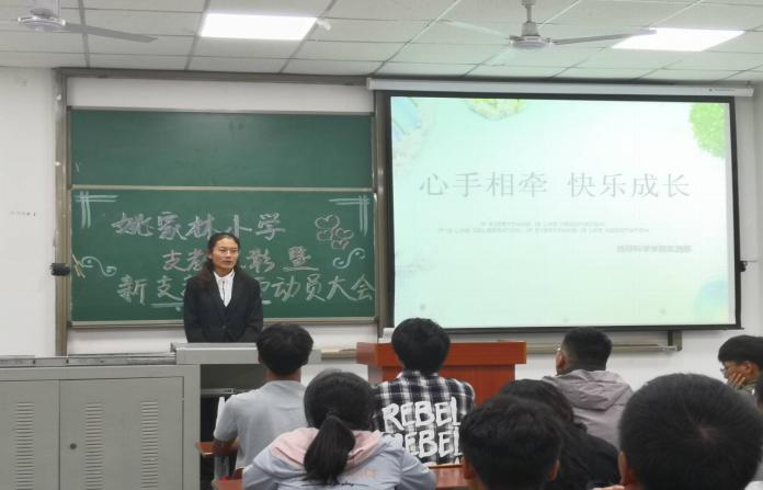 大会之初,首先由团委学生会实践部部长郑娜向我们介绍了姚家林小学支教活动概况。她谈到支教活动不仅使自身能力得到了提升,更让姚家林小学的孩子们受益匪浅,并从中获取温暖!在姚家林小学爱心支教活动举办的六年时间里,我校2138cn太阳集团团委学生会实践部在组织策划方面发挥了重要作用。这一年度里,舒湘学姐作为负责人之一,为新加入的支教老师分享她在过去支教活动中汲取的经验,使各位新成员身临其境地感受到支教活动的意义,不仅给孩子们带来了欢乐,更让他们学习到更多的知识。而支教的意义并不是单方面的,对我们大学生而言同样受益匪浅。