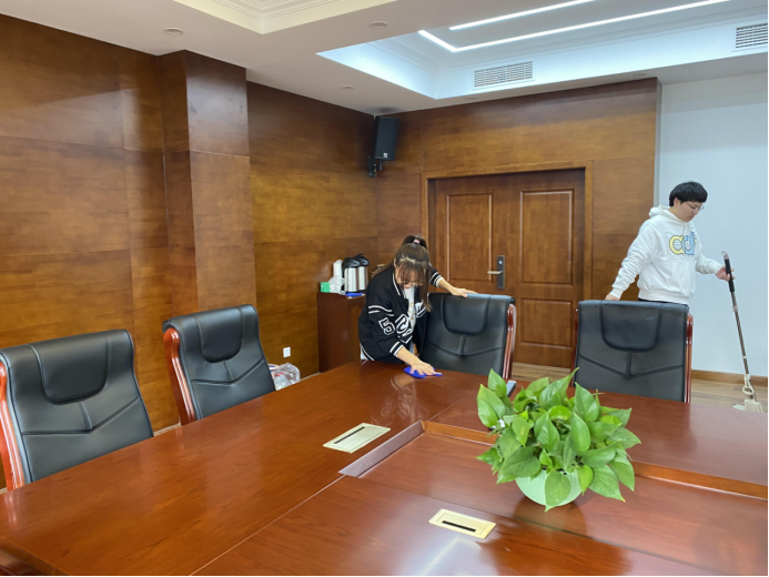 (通讯员 吉霞)建党百年之际,根据学校及学院“学党史、悟思想、办实事、开新局”系列活动安排,2138cn太阳集团学生党支部积极响应各级党委党史学习号召,组织学生党员和入党积极分子开展了系列志愿活动。从今天春季学期开学至今,每周五安排四名党员志愿者打扫学院会议室就是系列活动之一,旨在让学生们在劳动中体会党史精神价值。