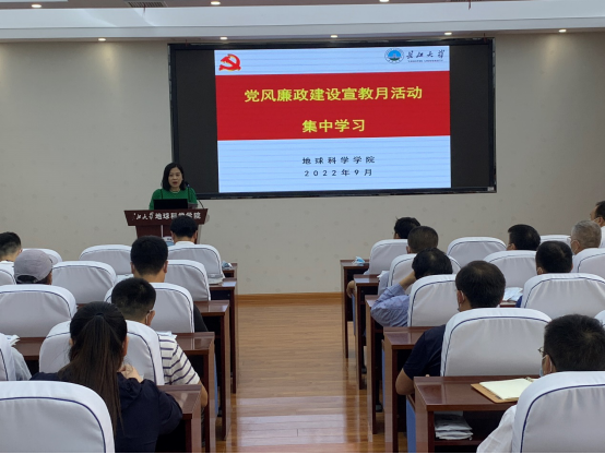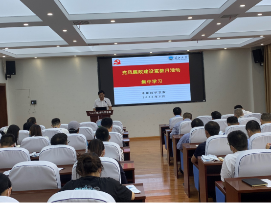 学院党委书记杨全辉以“深入推进清廉地科建设 永葆清正廉洁政治本色”为题,并结合学院工作实际,为学院全体教职工讲了廉政党课,从“学习贯彻习近平总书记关于党的自我革命战略思想”、“坚定不移推动全面从严治党向纵深发展”两个方面讲述了学院在党风廉政建设方面的措施和要求。