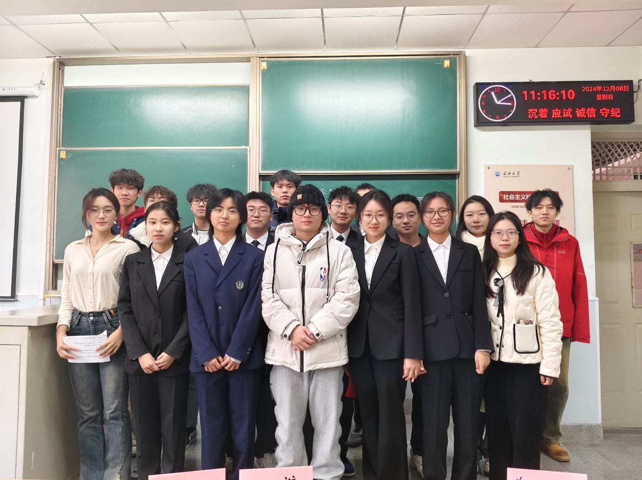 决赛开始,全场人员屏气凝神,正反双方围绕“熬夜是现代人的‘病’还是‘药’”这一辩题展开巅峰对决。正方地信 12402 班认为“熬夜是现代人的‘病’”,从现代生活矛盾性深入剖析;反方资工 12401 班则持“熬夜是现代人的‘药’”观点,以现代社会中的医生、警察等群体为例佐证。陈词环节,双方逻辑严谨,条理清晰;自由辩论时,正方提出“毒药”的说法,双方你来我往,互不相让,思维碰撞火花四溅;总结陈词阶段,双方再次明晰论点,升华辩题内涵。