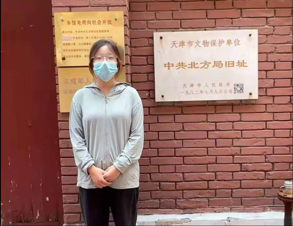 小组成员李畅于8月15日来到中共中央北方局旧址纪念馆。通过参观学习,她了解了刘少奇同志在艰苦条件下为了信仰,为了后世的幸福生活,将生死置之度外,领导学生进行抗日救亡运动的英勇事迹。这些事迹深深地触动着她,并下定决定要继承和发扬共产党人伟大斗争精神。