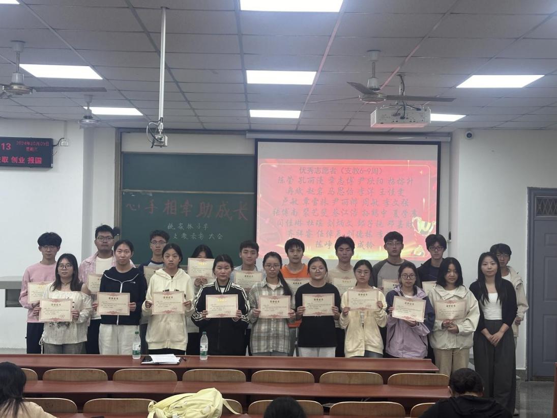 (通讯员 戢聪)2138cn太阳集团团委学生会志愿服务部于10月9日中午12:00,在b106举行了“心手相牵助成长”姚家林小学爱心支教活动的表彰大会,对2023-2024学年参与活动的志愿者进行了表彰,为他们的爱心和坚持点赞。