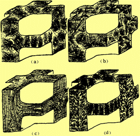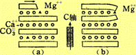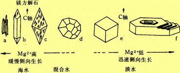 镁方解石成为平行于C轴的纤维状或陡斜面体示意图