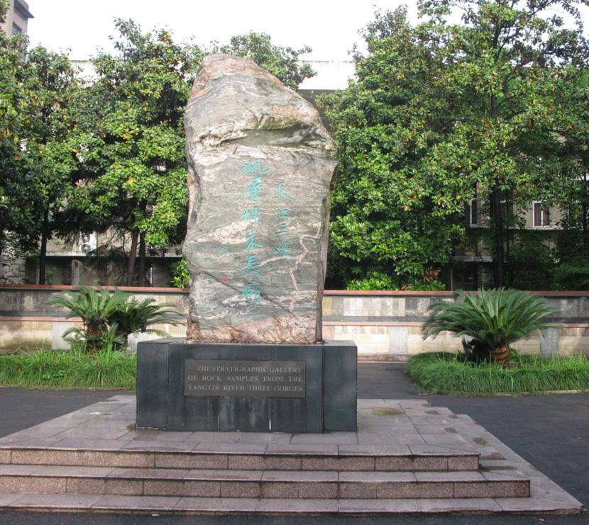 自上世纪初以来,三峡地区就已成为我国地质学家开展研究的重要场所;三峡地区同时也是我校沿用多年的野外地质实习基地和开展过多项科研的区域,目前已积累了大量地质资料和研究成果。时任学校领导考虑到三峡大坝的即将建成,这些地质资源部分将被淹没于水下。为了抢救自然资源,1996年,原江汉石油学院向中石油集团公司申请,并得到石油总公司的支持,进行了长江三峡地层剖面微缩工程(长江三峡地层长廊)(图19)的建设。1999年,长江三峡地层标本长廊在荆州校区建成,是我国地学界高度认可的宝贵地质资源,展示了扬子板块的沧海变迁与生命演替,实现了“观微缩了然沧海桑田事”的地学追求,17名院士为其题词传为佳话。它的顺利建成,珍藏了三峡地区宝贵的地质资源,提高了对三峡地区的地质研究水平,极大方便了专业之间的学术交流,该地层长廊自建成以来,每年接待数十批来自地质、石油、煤炭等行业和大专院校及科研院所的专家、学者们参观和学术交流。同时,加强了实践教学,改进了地质基础知识教学方法。每年有大批资工、地质、钻井、采油、物探、测井等专业的学生进行参观和现场教学,提高了学生对地质知识的学习兴趣,显示出了良好的教学效果。是实践教学的优良场所。此外,该长廊每年还接纳大批中、小学生参观,进行地质科普知识学习,收到了良好的社会效益。
