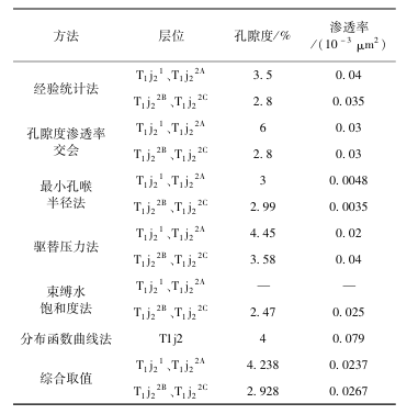 表1磨溪地区T1j2各定方法确定物性下限值表