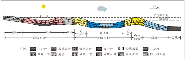 图3镶边碳酸盐岩台地-斜坡沉积模式
