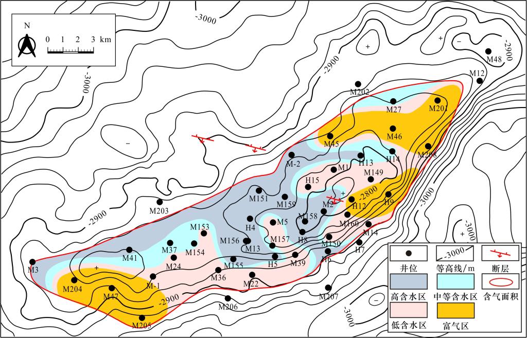 该研究在综合地质资料、前人研究成果、生产动态资料的基础上,采用动静结合的方法,从气水分异程度、储层的物性特征、隔夹层以及异常高压等方面,对嘉二气藏复杂的气水分布关系及其控制因素进行了深入研究。结果表明:嘉二气藏横向上气水分布主要受储层物性的非均质性和气水分异程度的影响,储集体之间连通性差,气水分布混杂;纵向上,嘉二气藏稳定分布的膏岩和泥岩隔层将嘉二1亚段和嘉二2亚段分隔为两个相对独立的气水系统,嘉二2亚段是主要的气水分布层和主产层;受多种因素的影响导致嘉二气藏形成了2种气水分布模式,构造起伏带模式下的气井产量高、产能差异大,构造平缓带模式下的气井生产情况普遍较差。气水分布模式的建立为气藏下一步的合理开发工作提供了参考依据。