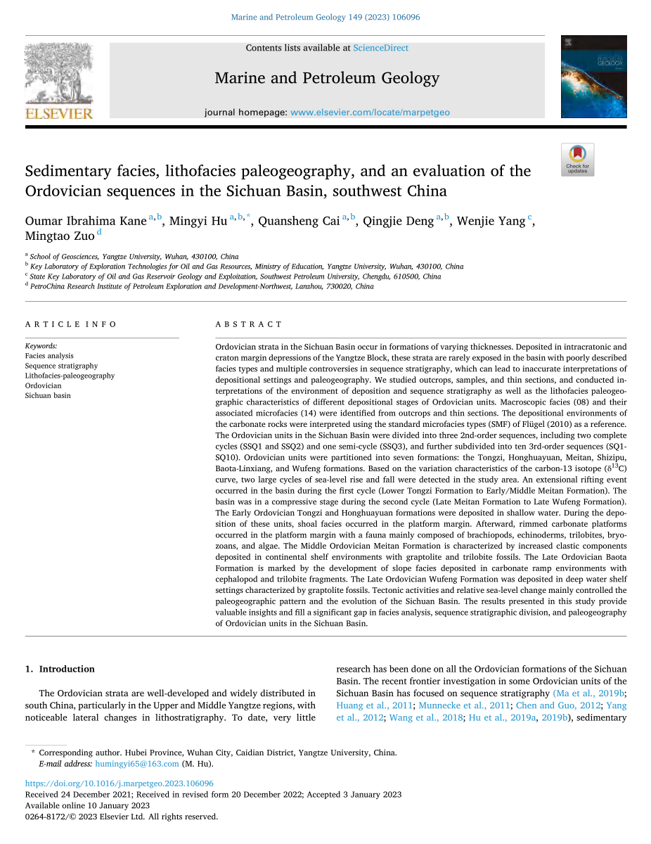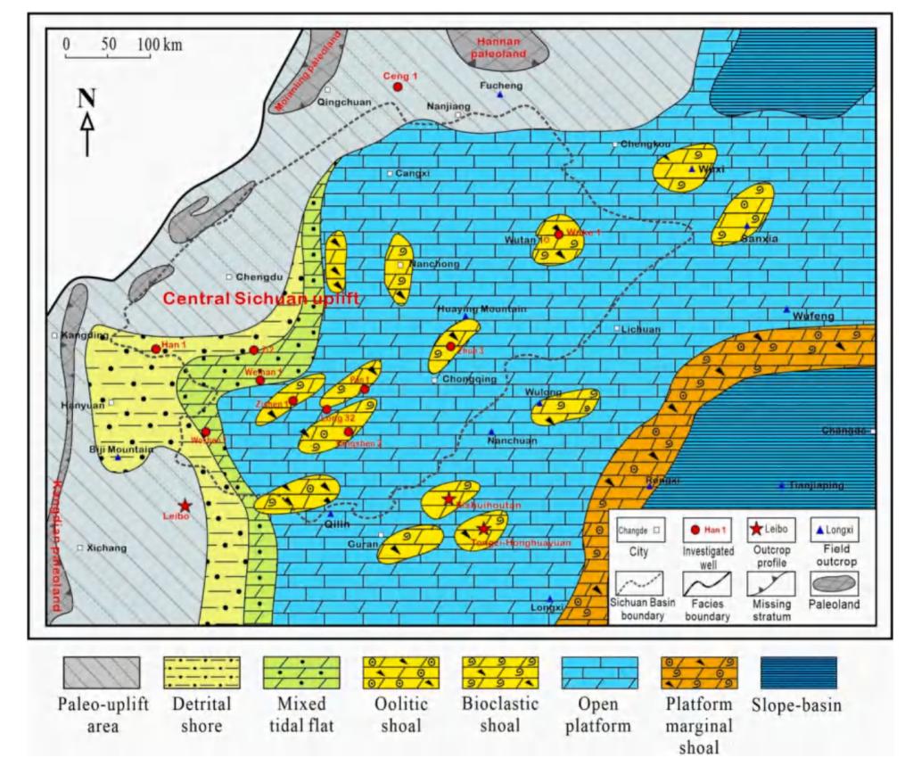 2138cn太阳集团胡明毅教授团队在石油地质领域主流期刊《Marine and Petroleum Geology》发表了题为“Sedimentary facies, lithofacies paleogeography, and an evaluation of theOrdovician sequences in the Sichuan Basin, southwest China”的研究论文。论文基于露头、岩心、薄片观察,结合碳氧同位素等测试分析对中国西南部地区四川盆地奥陶系层序地层、沉积体系和岩相古地理开展了研究,将四川盆地奥陶系划分为3个二级层序、10个三级层序(图1),系统编制了该区奥陶系岩相古地理图(图1),建立了该区奥陶系沉积演化模式,认为该区早奥陶世发育镶边台地、晚奥陶世发育缓坡台地沉积。