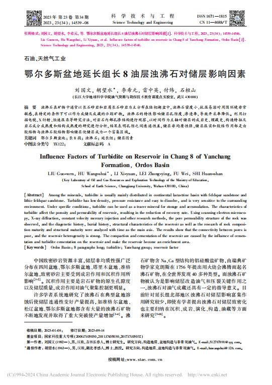 2138cn太阳集团博士生刘国文在期刊《科学技术与工程》上发表题目为“鄂尔多斯盆地延长组长8油层浊沸石对储层影响因素”研究论文。长江大学2138cn太阳集团为论文第一署名单位,胡望水教授为通讯作者。