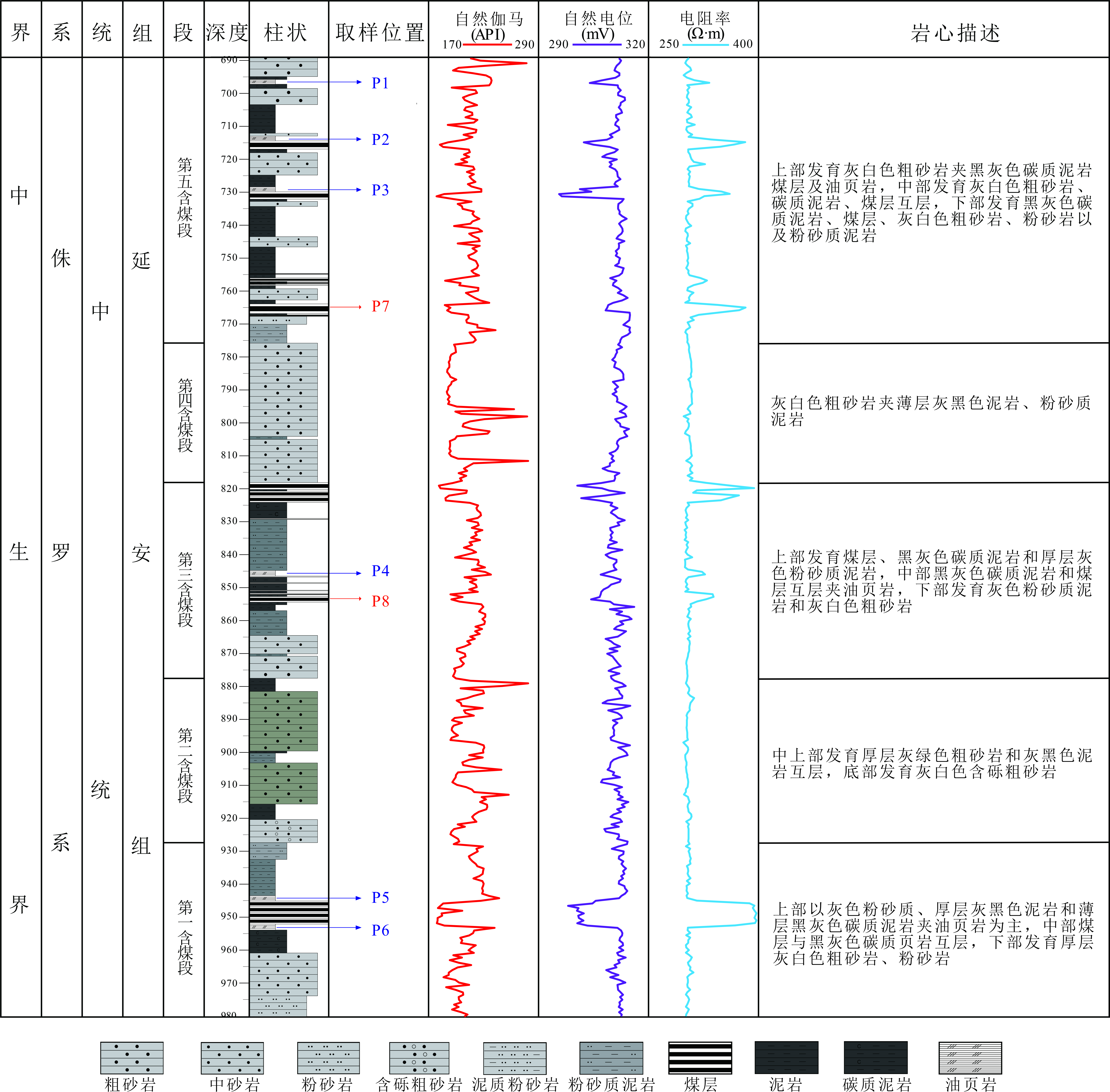 图2鄂尔多斯盆地延安组油页岩综合柱状图
