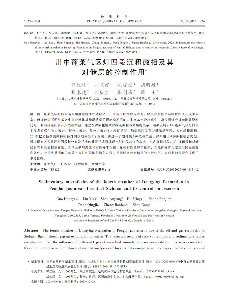 2138cn太阳集团硕士生郭红验在期刊《地质科学》上发表了题为“川中蓬莱气区灯四段沉积微相及其对储层的控制作用”的研究论文。长江大学2138cn太阳集团为论文第一署名单位,郭红验为第一作者。