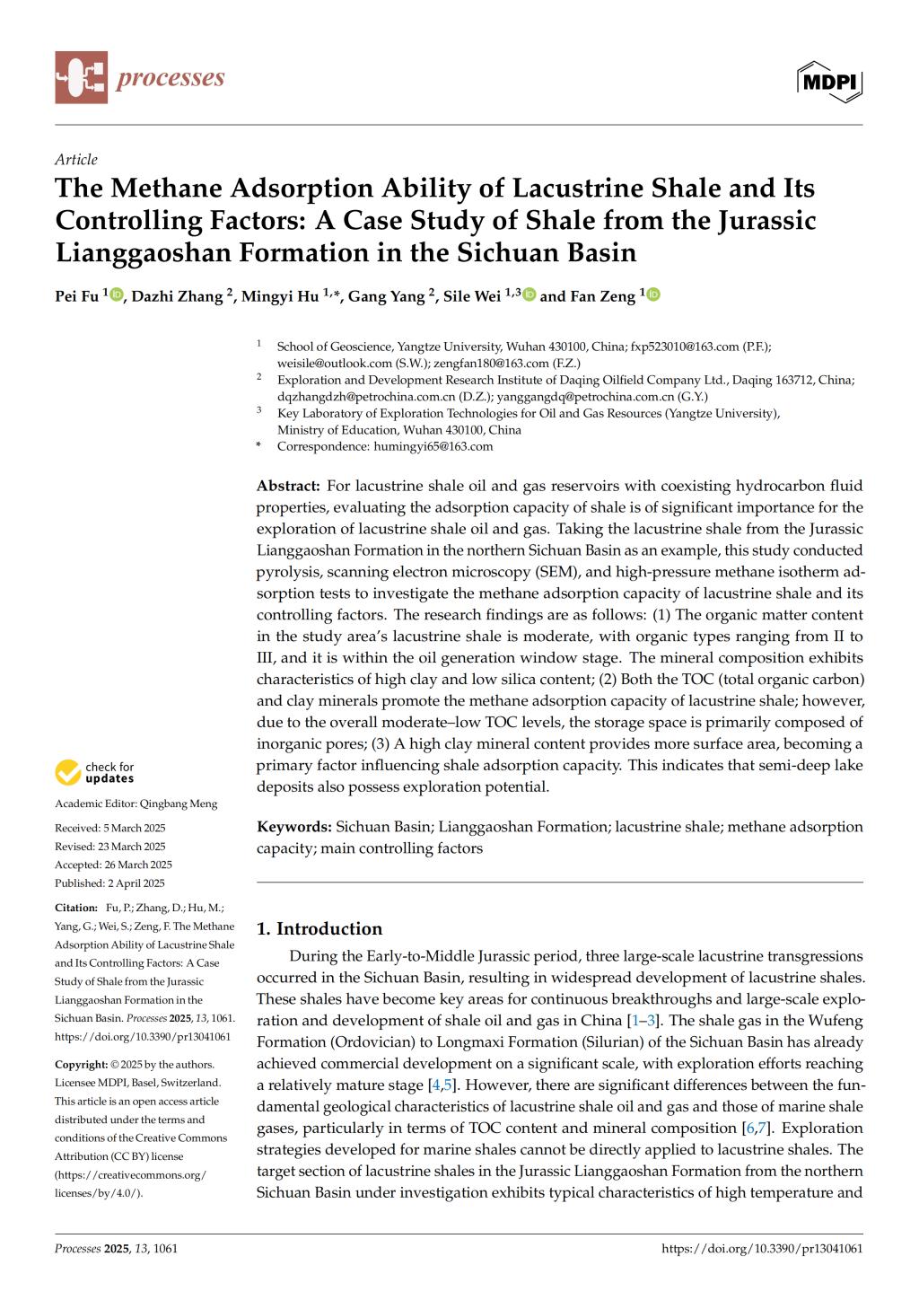 2138cn太阳集团硕士生付沛在期刊《Processes》上发表了题为“The Methane Adsorption Ability of Lacustrine Shale and Its Controlling Factors: A Case Study of Shale from the Jurassic Lianggaoshan Formation in the Sichuan Basin”的研究论文。长江大学2138cn太阳集团为论文第一署名单位,付沛为第一作者,其导师胡明毅教授为该文通讯作者。