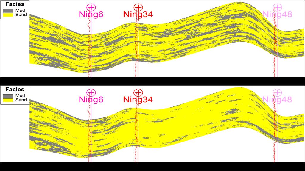 该研究选取鄂尔多斯岔地合水地区延长组7段页岩油藏为为研究对象,开展小层级别的地层对比,建立精细等时地层格架,利用petrel建模软件,综合运用了确定性建模和随机性建模相结合方式,以等时建模与相控建模的原则,根据砂泥岩厚度值与地层厚度值相比,得到地质概率面,并将其约束,得到概率面后约束岩相模型;按照序贯指示和序贯高斯随机性建模,建立了基于岩相模型和岩相控制的储层属性模型,提供了稳定可信赖的静态模型。建立的储层三维定量地质模型更准确地描述了各个岩相的空间分布特性,从而实现了利用精准的数据分析和模拟算法去揭示各类参数的宏观统计规律,使岩相建模从依赖于“数学实际”转向受制于多种地质条件的“地质实际”。系统整理长7段页岩油勘探及开发的核心技术,必将为国内页岩油的勘探与开发提供借鉴。