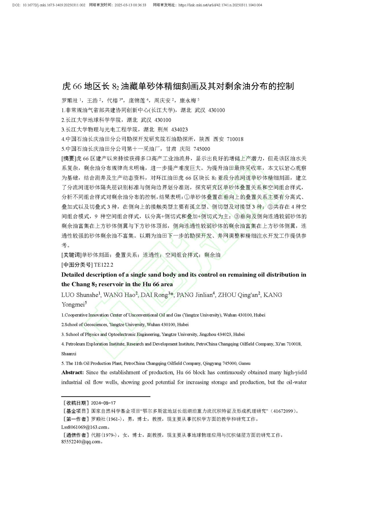 2138cn太阳集团硕士生王浩在期刊《长江大学学报(自然科学版)》上发表了题为“虎66地区长82油藏单砂体精细刻画及其对剩余油分布”的研究论文。该研究在井网砂体解剖的基础上,对单砂体进行精细刻画,分析辫状河三角洲平原亚相背景下的河道砂体接触类型及砂体连通性、空间组合样式及其对剩余油分布的控制,以期为油田下一步的勘探开发、井网调整和精细注水开发工作提供参考。