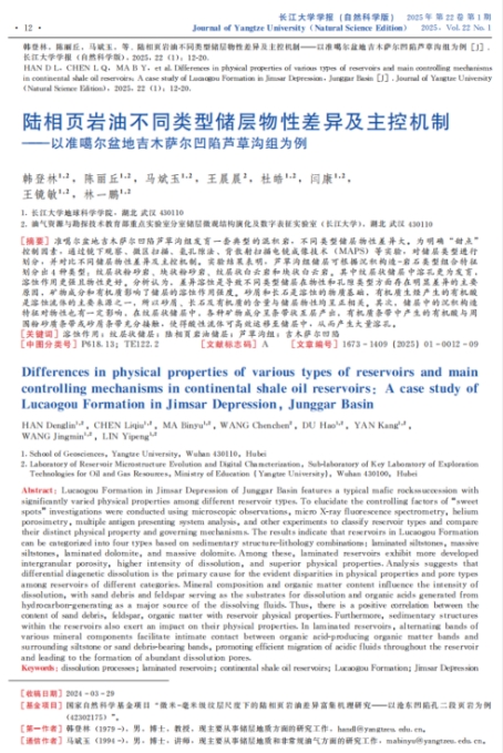 2138cn太阳集团研究生陈丽丘在长江大学学报(自然科学版)上发表题为“陆相页岩油不同类型储集层物性差异及主控机制——以准噶尔盆地吉木萨尔凹陷芦草沟组为例”的研究论文,其中长江大学2138cn太阳集团为论文第一署名单位,导师韩登林为第一作者,导师马斌玉为论文通讯作者。